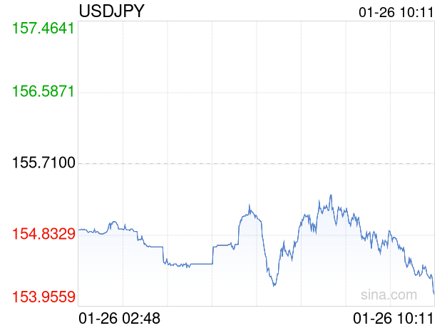 新浪外汇消息2026年01月26日,截至10时11分,外汇市场上美元兑日元汇率跌破1美元兑换154.1100日元。跌幅为-1.0275%