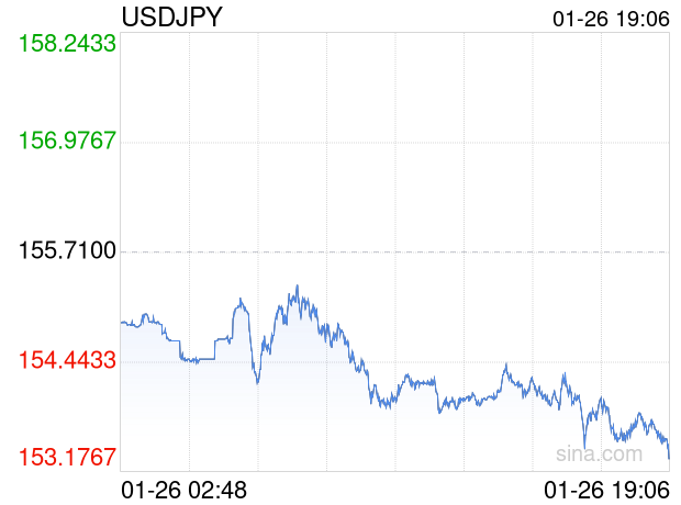 新浪外汇消息2026年01月26日,截至19时06分,外汇市场上美元兑日元汇率跌破1美元兑换153.3100日元。跌幅为-1.5413%