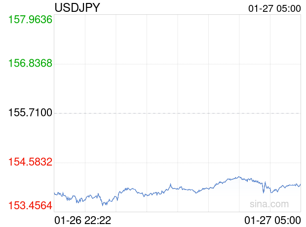 新浪外汇消息2026年01月27日,截至05时01分,外汇市场上美元兑日元汇率跌破1美元兑换154.0800日元。跌幅为-1.0468%