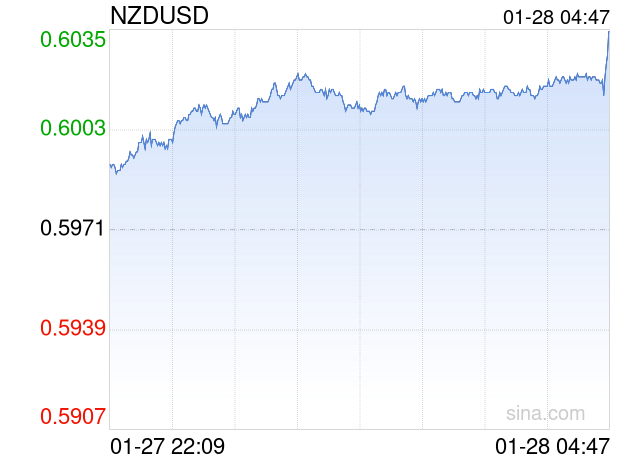 新浪外汇消息2026年01月28日,截至04时47分,外汇市场上新西兰元兑美元汇率突破1新西兰元兑换0.6034美元。涨幅为1.0551%