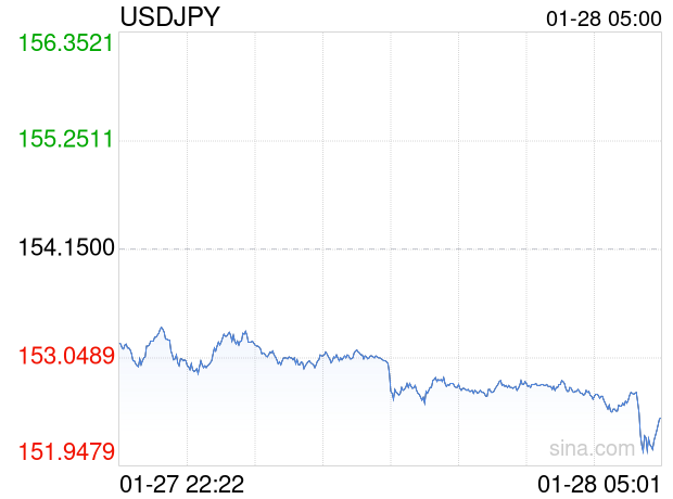 新浪外汇消息2026年01月28日,截至05时00分,外汇市场上美元兑日元汇率跌破1美元兑换152.4200日元。跌幅为-1.1223%