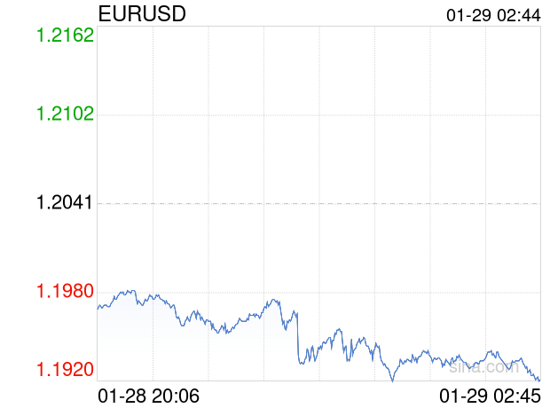 新浪外汇消息2026年01月29日,截至02时44分,外汇市场上欧元兑美元汇率跌破1欧元兑换1.1920美元。跌幅为-1.0049%