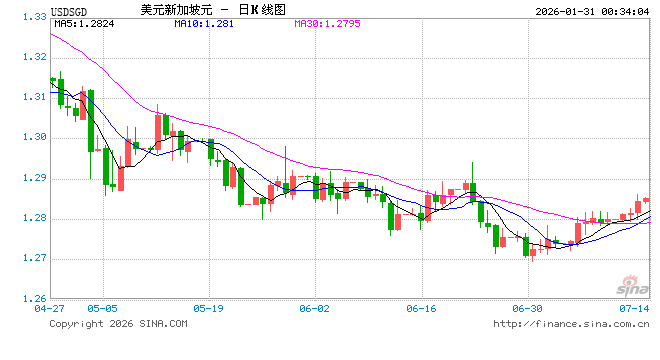 新浪外汇消息2026年01月31日,截至00时33分,外汇市场上美元兑新加坡元汇率突破1美元兑换1.2705新加坡元。涨幅为0.5063%