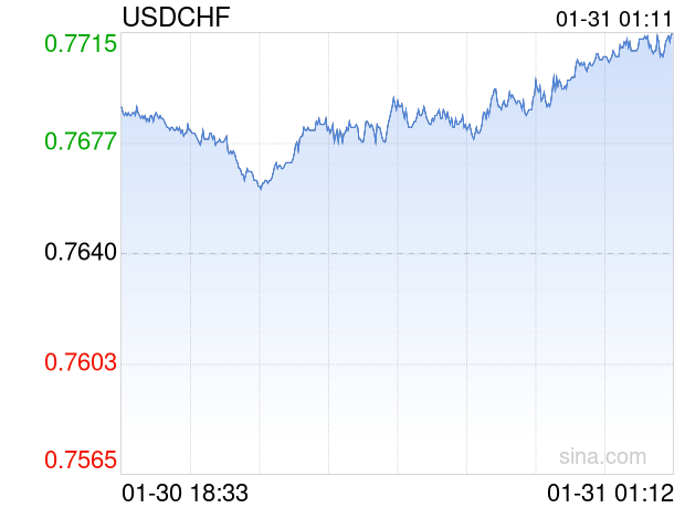 新浪外汇消息2026年01月31日,截至01时11分,外汇市场上美元兑瑞士法郎汇率突破1美元兑换0.7718瑞士法郎。涨幅为1.0209%