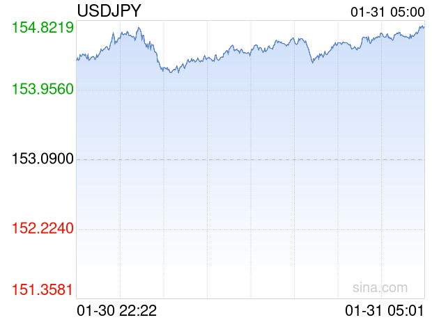 新浪外汇消息2026年01月31日,截至05时01分,外汇市场上美元兑日元汇率突破1美元兑换154.7400日元。涨幅为1.0778%