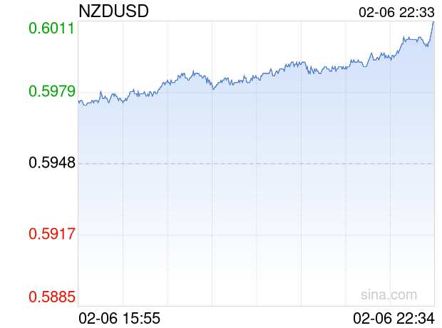 新浪外汇消息2026年02月06日,截至22时33分,外汇市场上新西兰元兑美元汇率突破1新西兰元兑换0.6011美元。涨幅为1.0592%