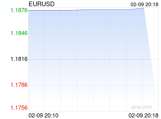 新浪外汇消息2026年02月09日,截至20时18分,外汇市场上欧元兑美元汇率突破1欧元兑换1.1876美元。涨幅为0.5078%