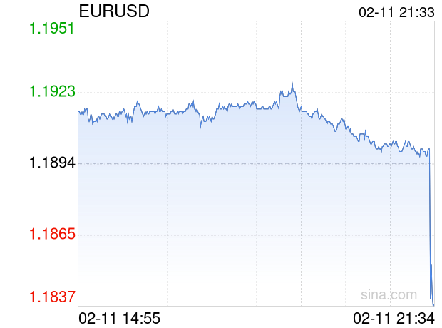 新浪外汇消息2026年02月11日,截至21时33分,外汇市场上欧元兑美元汇率跌破1欧元兑换1.1833美元。跌幅为-0.5129%