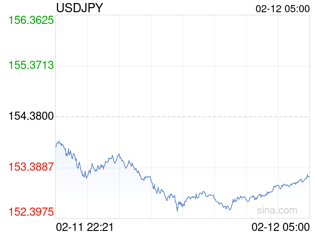 新浪外汇消息2026年02月12日,截至05时00分,外汇市场上美元兑日元汇率跌破1美元兑换153.2300日元。跌幅为-0.7449%