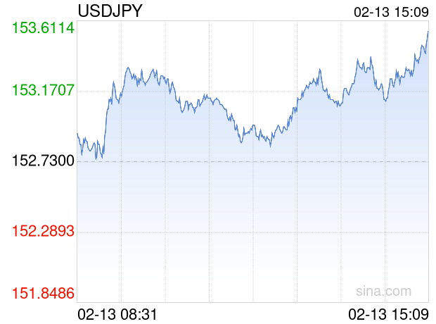 新浪外汇消息2026年02月13日,截至15时09分,外汇市场上美元兑日元汇率突破1美元兑换153.5500日元。涨幅为0.5369%