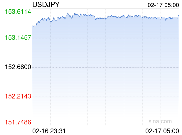新浪外汇消息2026年02月17日,截至05时00分,外汇市场上美元兑日元汇率突破1美元兑换153.5100日元。涨幅为0.5436%
