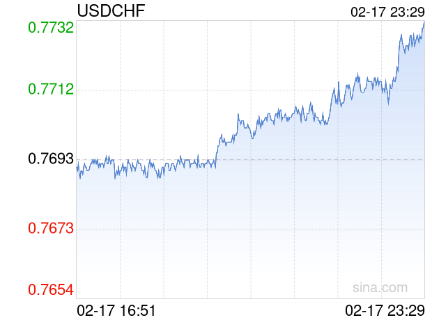 新浪外汇消息2026年02月17日,截至23时29分,外汇市场上美元兑瑞士法郎汇率突破1美元兑换0.7732瑞士法郎。涨幅为0.5070%