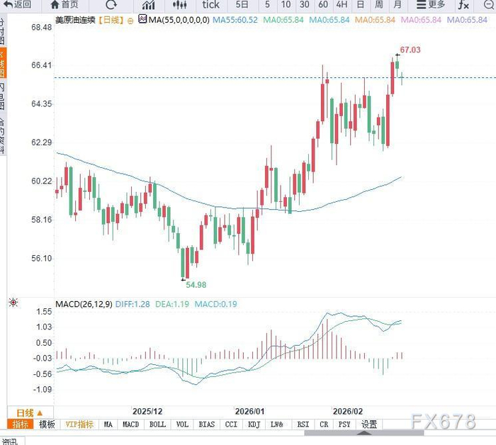汇通财经APP讯——周一亚盘时段,美原油小幅回落,交投于65.86美元附近,多头突破之后回踩,短期延续震荡上行,继续关注风险溢价是否进一步走高。