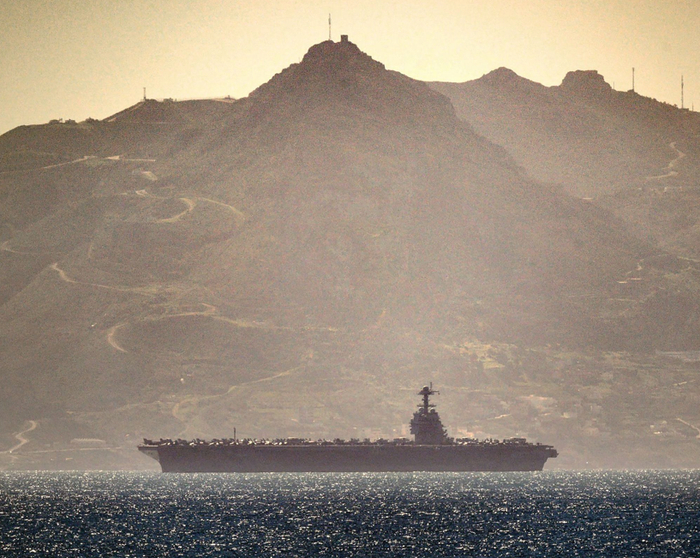 (当地时间2026年2月20日,英国直布罗陀,大卫·帕罗迪拍摄并发布的资料图显示美国杰拉尔德·福特号航母现身直布罗陀海岸)