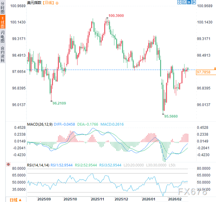 政府停摆本身就是美国政治功能失调的直观体现,直接削弱了市场对美元的信心。政府停摆与最高法院关税裁决、外部干预预期等因素形成共振,进一步强化了美元的看跌情绪。美元指数周三亚市时段于97.80附近窄幅震荡。