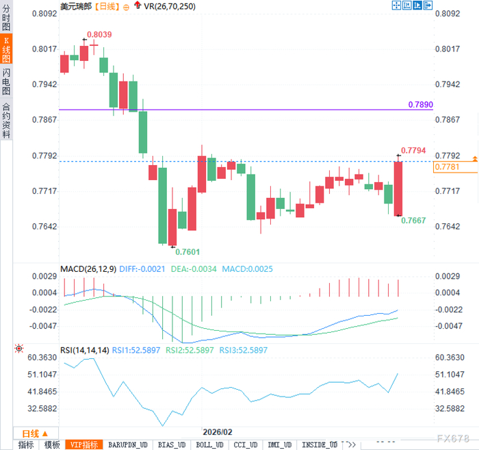汇通财经APP讯——外汇市场今日上演了一出惊心动魄的逆转大戏。就在交易员们还沉浸在瑞郎作为避险货币将持续走强的预期中时,瑞士央行突然出手,发出了极为明确的干预信号。这一举动如同在平静的湖面投下巨石,瞬间激起千层浪,导致瑞郎汇率全线跳水,而美元兑瑞郎则强势反弹。3月2日周一北美时段,美元兑瑞郎交投0.7780附近,日线图上赫然出现一根强劲的大阳线,扭转了此前的颓势。