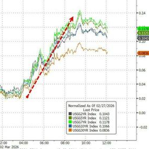 在美债抛售潮加剧的同时,一份报告显示,美国2月份制造业活动有所扩张,且投入成本激增。由于关键的霍尔木兹海峡实际上处于关闭状态,推高了能源成本,欧洲政府债券也同步下跌,市场通胀预期指标大幅攀升。