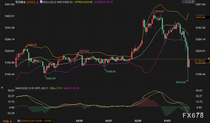 支撑区间:5150 - 5180美元。此区间为前期回调低点区域,若跌破该支撑,金价可能进一步向下寻找60分钟图上的下一技术支撑位。阻力区间:5250 - 5280美元。前期高点5249美元与布林带中轨5306美元之间构成短期阻力带。金价需重新站稳5250美元上方,方能缓解短期看跌情绪。盘中关注点:核心在于美债10年期收益率的走势。若收益率继续上行并站稳4.10%上方,金价将进一步承压。反之,若收益率从高点回落,可能为金价带来短暂的喘息机会。