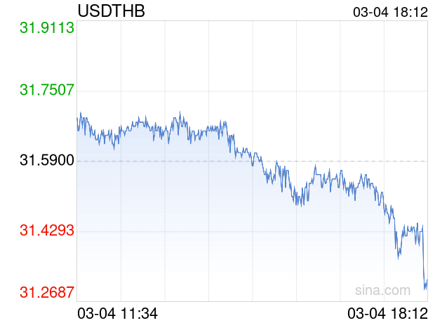 03月04日 美元兑泰铢跌破31.2700 折算100泰铢汇率兑22.0980人民币