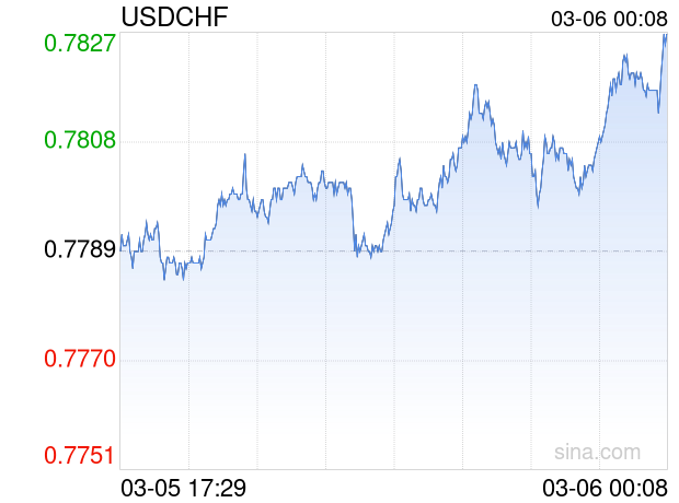 新浪外汇消息2026年03月06日,截至00时08分,外汇市场上美元兑瑞士法郎汇率突破1美元兑换0.7828瑞士法郎。涨幅为0.5007%