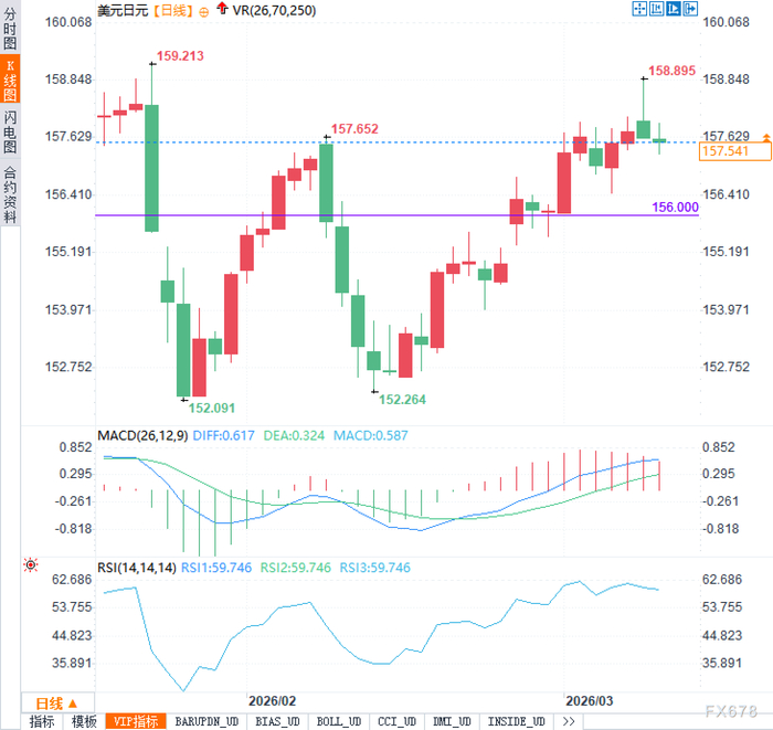 日本央行3月18日至19日政策会议即将召开,市场普遍预期维持0.75%的政策利率不变。3月10日周二,美元兑日元汇率在157.50附近波动,日经指数近期围绕53000点至54000点区间震荡。日本2025年第四季度实际国内生产总值环比增长0.1%,年率化约0.2%,虽低于市场早前预期,但工业生产1月环比反弹2.2%、零售销售环比增长4.1%,显示内需逐步修复。