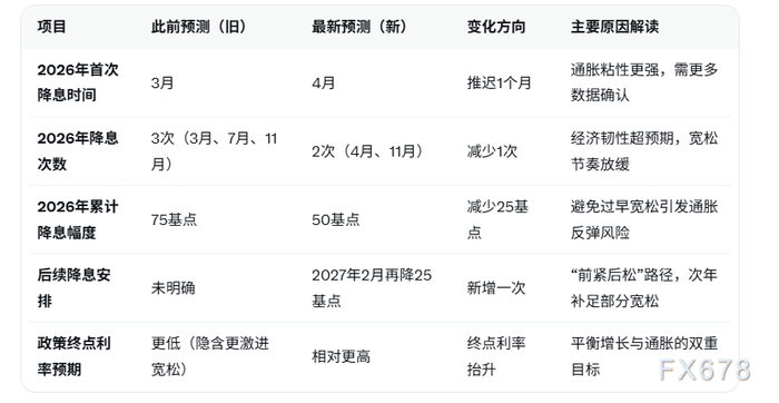 答:这体现了“前紧后松”的政策路径判断。摩根士丹利预期2026年上半年通胀压力仍存,英国央行将保持限制性立场;下半年随着通胀进一步回落和经济潜在放缓,宽松空间逐步打开,因此把部分宽松推迟到次年2月,既控制通胀风险,又为增长提供缓冲。