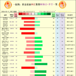 一张图:2026年3月11日黄金原油外汇股指“枢纽点+多空持仓信号”一览