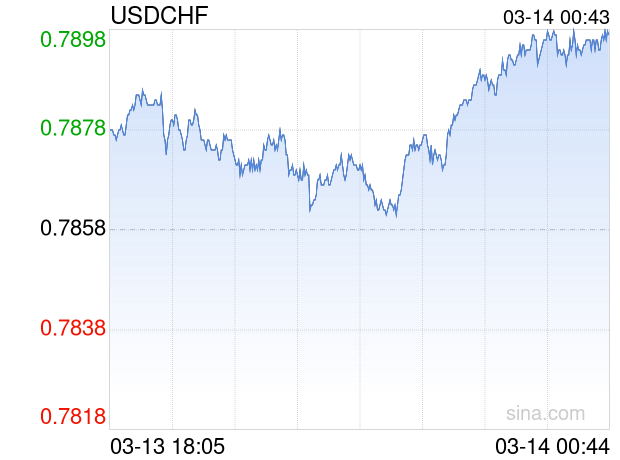 新浪外汇消息2026年03月14日,截至00时43分,外汇市场上美元兑瑞士法郎汇率突破1美元兑换0.7898瑞士法郎。涨幅为0.5090%
