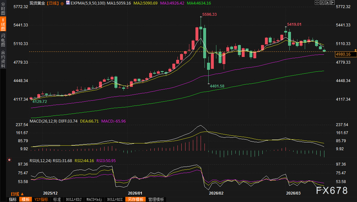 黄金交易提醒:金价上周崩跌近3%!伊朗战火助力美元飙破100,5000关口惨遭失守,本周继续暴跌?