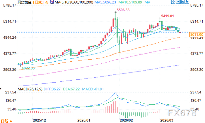 现货黄金日线图 来源:易汇通北京时间3月16日13:53 现货黄金 报 5018.90 美元/盎司