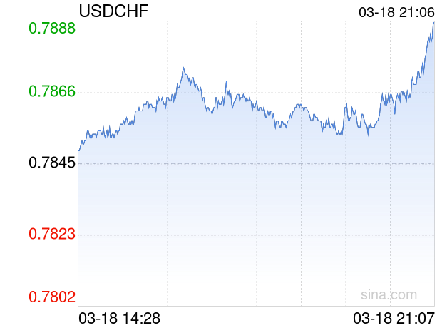 新浪外汇消息2026年03月18日,截至21时06分,外汇市场上美元兑瑞士法郎汇率突破1美元兑换0.7887瑞士法郎。涨幅为0.5354%