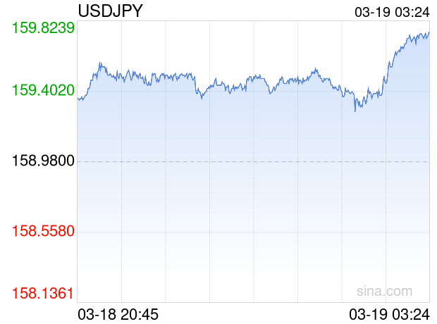 新浪外汇消息2026年03月19日,截至03时24分,外汇市场上美元兑日元汇率突破1美元兑换159.7800日元。涨幅为0.5032%