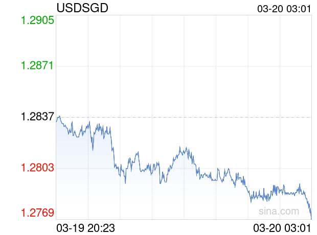 新浪外汇消息2026年03月20日,截至03时01分,外汇市场上美元兑新加坡元汇率跌破1美元兑换1.2768新加坡元。跌幅为-0.5375%