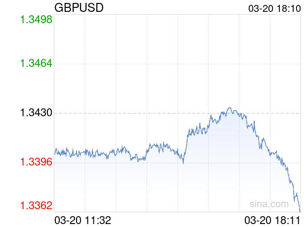 新浪外汇消息2026年03月20日,截至18时10分,外汇市场上英镑兑美元汇率跌破1英镑兑换1.3362美元。跌幅为-0.5063%