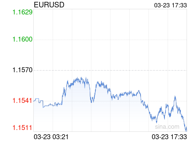 新浪外汇消息2026年03月23日,截至17时33分,外汇市场上欧元兑美元汇率跌破1欧元兑换1.1511美元。跌幅为-0.5099%