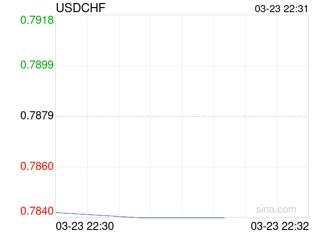 新浪外汇消息2026年03月23日,截至22时31分,外汇市场上美元兑瑞士法郎汇率跌破1美元兑换0.7839瑞士法郎。跌幅为-0.5077%