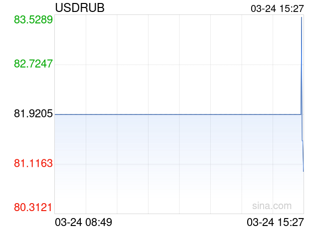 03月24日 美元兑俄罗斯卢布跌破80.9955 折算100俄罗斯卢布汇率兑8.4996人民币