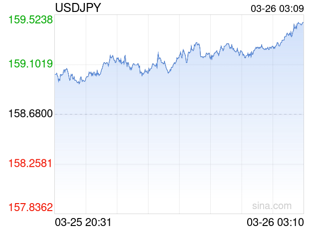 新浪外汇消息2026年03月26日,截至03时09分,外汇市场上美元兑日元汇率突破1美元兑换159.4800日元。涨幅为0.5042%