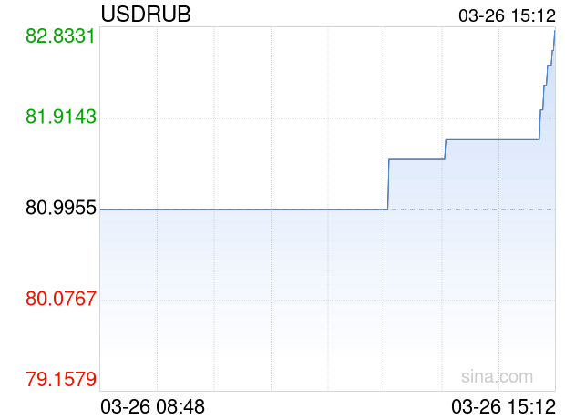 新浪外汇消息2026年03月26日,截至15时12分,外汇市场上美元兑俄罗斯卢布汇率突破1美元兑换82.8000俄罗斯卢布。涨幅为2.2279%