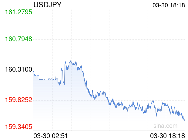 新浪外汇消息2026年03月30日,截至18时18分,外汇市场上美元兑日元汇率跌破1美元兑换159.5000日元。跌幅为-0.5053%