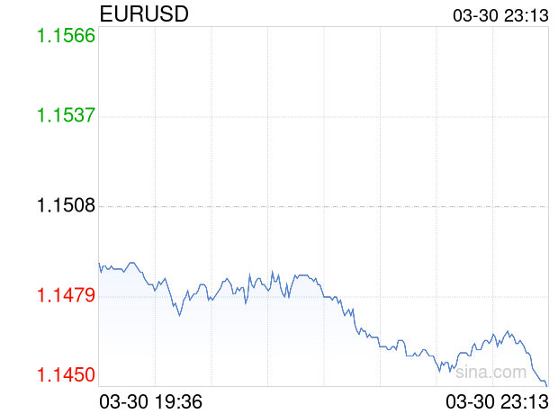 新浪外汇消息2026年03月30日,截至23时13分,外汇市场上欧元兑美元汇率跌破1欧元兑换1.1450美元。跌幅为-0.5040%