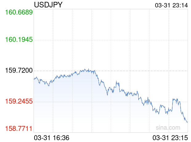 新浪外汇消息2026年03月31日,截至23时14分,外汇市场上美元兑日元汇率跌破1美元兑换158.9100日元。跌幅为-0.5071%