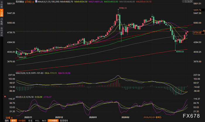 (现货黄金日线图,来源:易汇通)北京时间07:31,现货黄金现报4796.24美元/盎司。