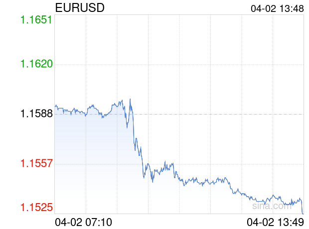 新浪外汇消息2026年04月02日,截至13时48分,外汇市场上欧元兑美元汇率跌破1欧元兑换1.1525美元。跌幅为-0.5437%