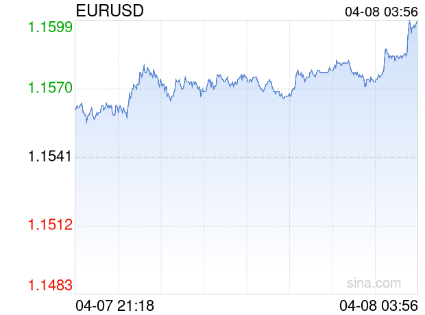 新浪外汇消息2026年04月08日,截至03时56分,外汇市场上欧元兑美元汇率突破1欧元兑换1.1599美元。涨幅为0.5026%