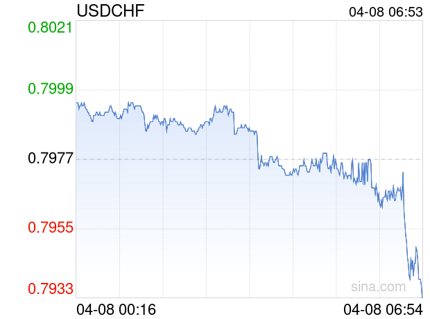 新浪外汇消息2026年04月08日,截至06时53分,外汇市场上美元兑瑞士法郎汇率跌破1美元兑换0.7934瑞士法郎。跌幅为-0.5391%