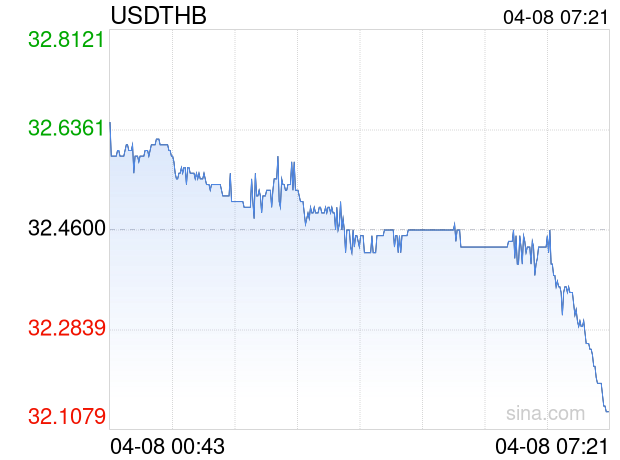 04月08日 美元兑泰铢跌破32.1200 折算100泰铢汇率兑21.3383人民币