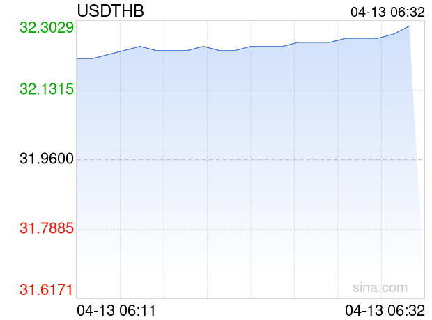 新浪外汇消息2026年04月13日,截至06时32分,外汇市场上美元兑泰铢汇率突破1美元兑换32.2900泰铢。涨幅为1.0325%