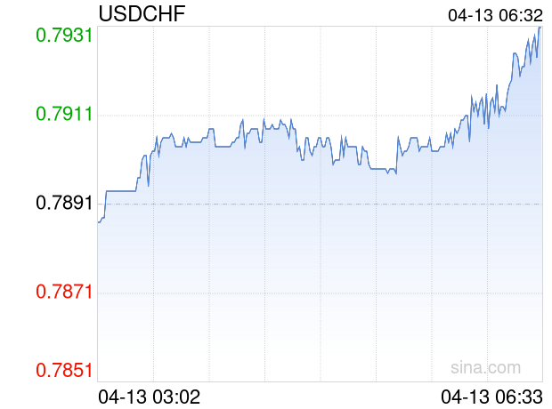 新浪外汇消息2026年04月13日,截至06时32分,外汇市场上美元兑瑞士法郎汇率突破1美元兑换0.7931瑞士法郎。涨幅为0.5069%
