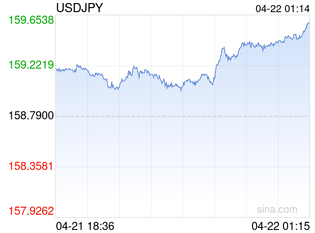 新浪外汇消息2026年04月22日,截至01时14分,外汇市场上美元兑日元汇率突破1美元兑换159.5900日元。涨幅为0.5038%